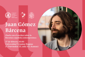 On February 27, at 10:00 AM, Vytautas Magnus University (V. Putvinskio g. 23, room 313) will host a meeting and discussion with writer Juan Gómez Bárcena, a representative of contemporary Spanish literature. The event is organised for the VMU community by the Embassy of the Kingdom of Spain in Lithu...