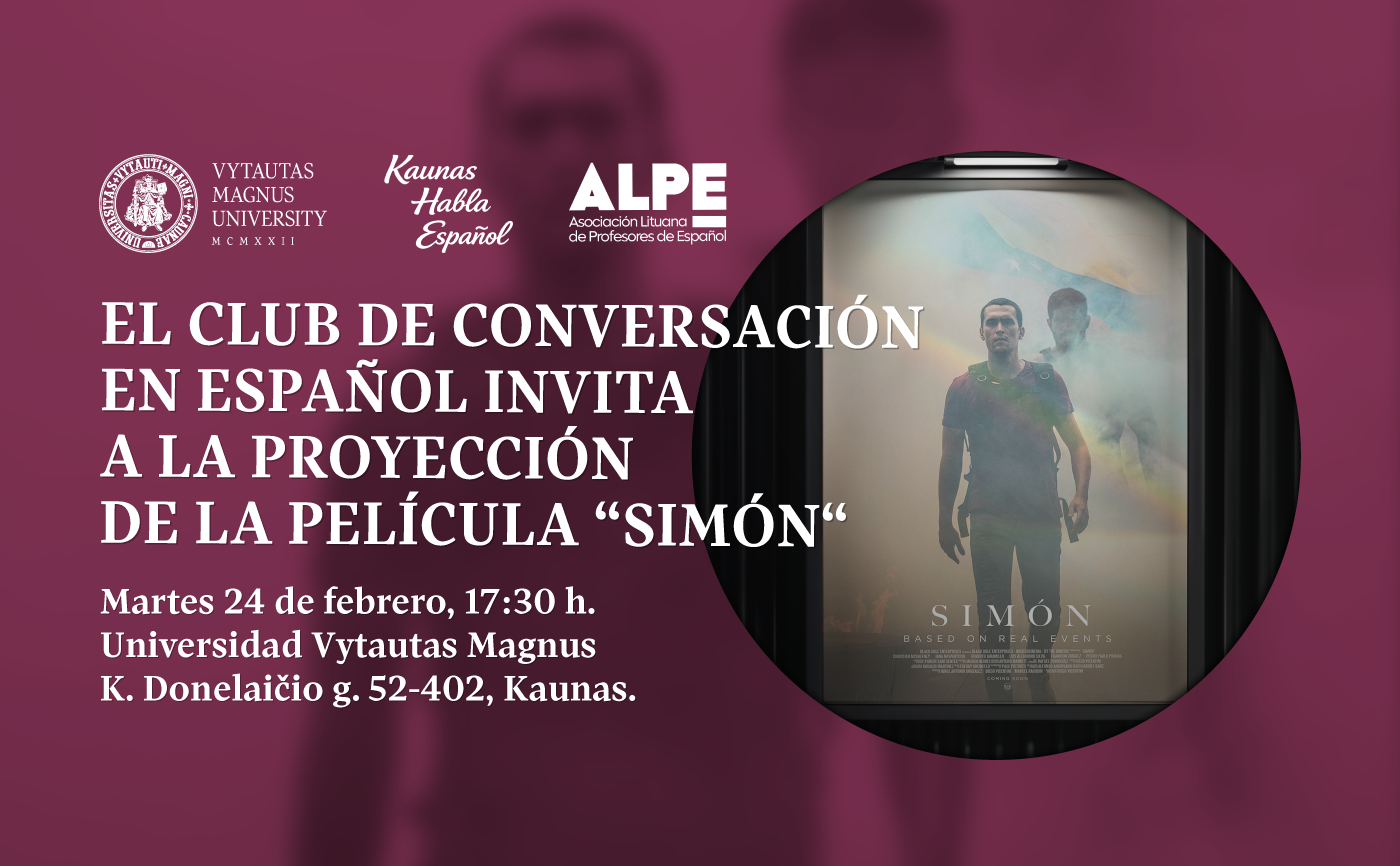 Vytautas Magnus University, the Spanish conversation club Kaunas Habla Español, and the Association of Spanish Teachers and Lecturers in Lithuania (ALPE) invite everyone interested in the Spanish language to a screening of the film SIMÓN and a conversation (charla) in Spanish after the film.