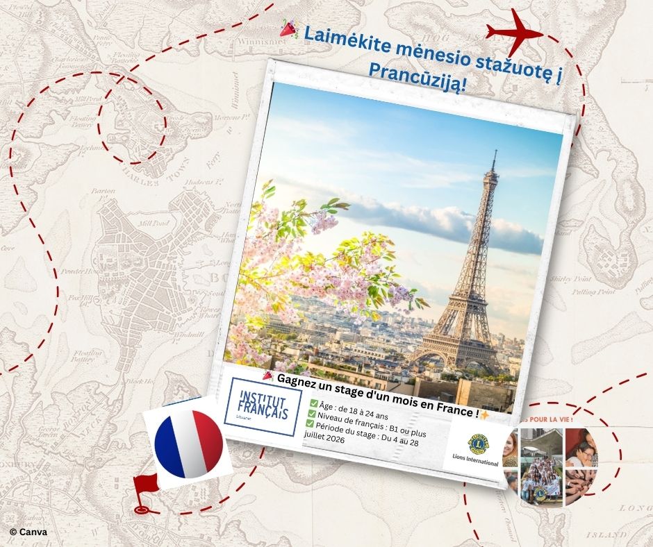 Tous les frais de voyage, d’hébergement et de repas sont pris en charge ! En collaboration avec les Centres Internationaux Francophones des Lions Clubs, vous aurez l’occasion de rencontrer des jeunes francophones issus du monde entier et de représenter la Lituanie pour l’année 2026.