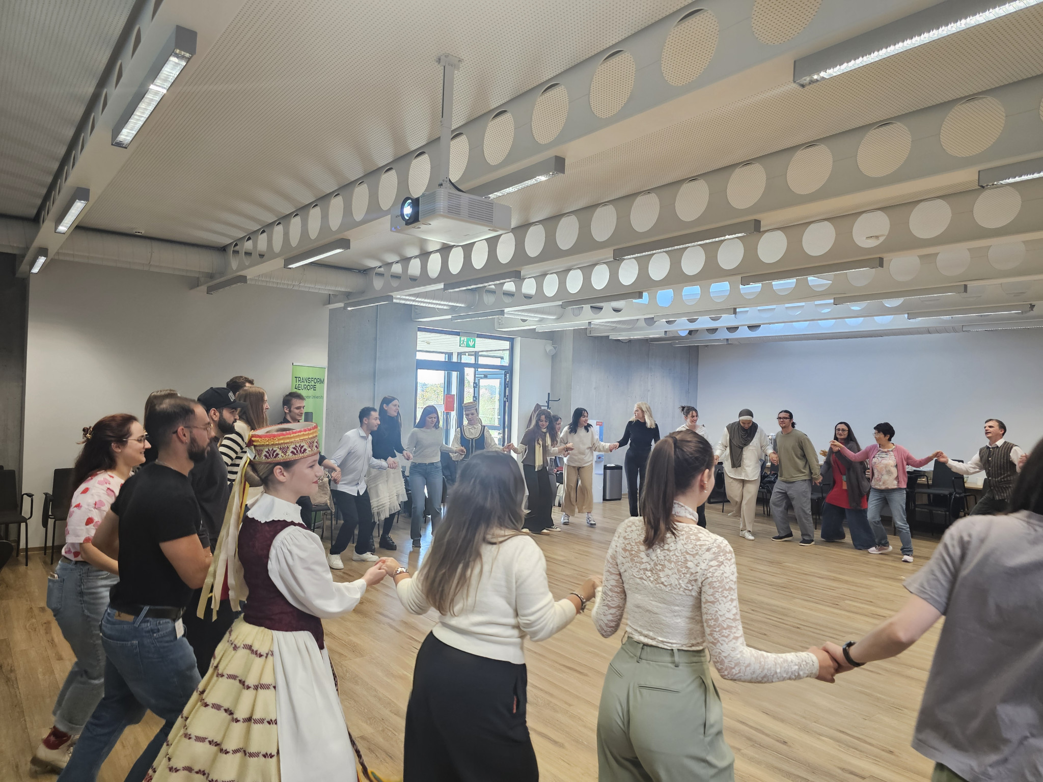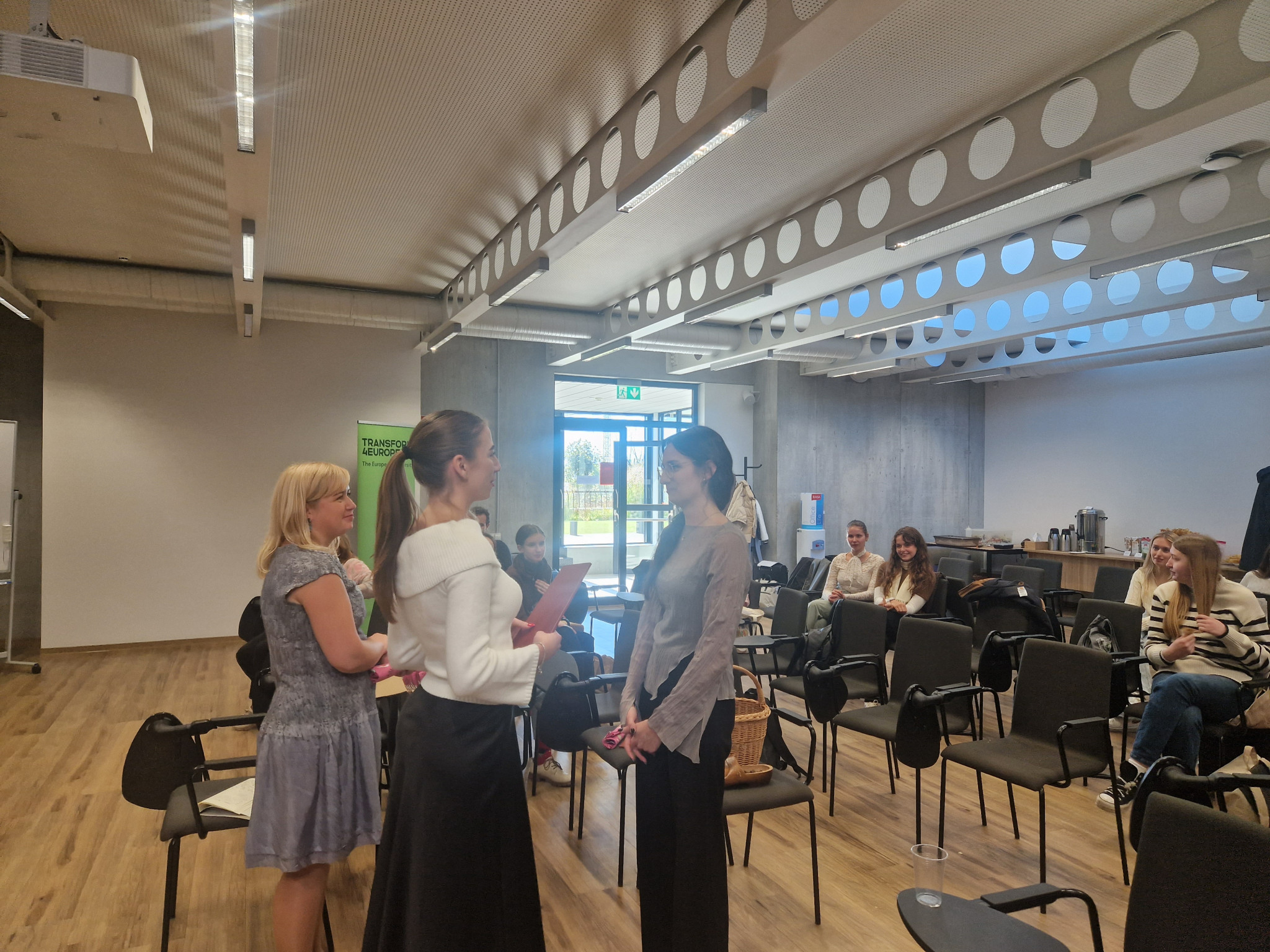 Studentai ne tik klausė paskaitų ir dalyvavo diskusijose apie DI įrankius, tarpkultūrinės komunikacijos iššūkius, bet pristatė savo šalis, mokė vieni kitus žodžių, frazių savo kalbomis, o ypač visus sužavėjo projektas su VDU Muzikos akademija: mišriosios intensyvios programos dalyviai vedė dirbtuves Muzikos akademijos studentams, kurie baigiamojo koncerto metu, per Europos kalbų dieną, sudainavo dainas visomis dvylika Transform4Europe aljanso kalbų.