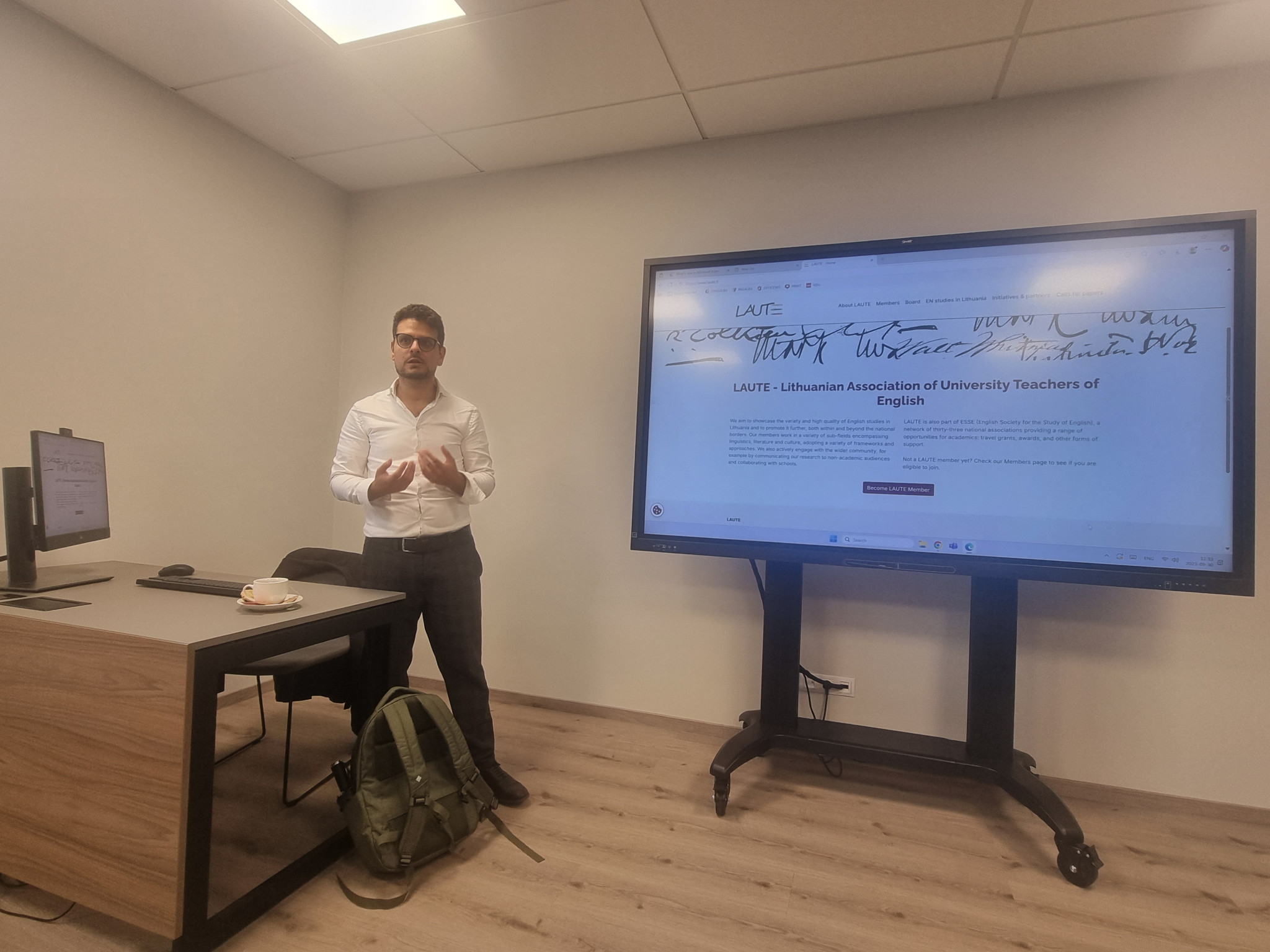 Rugsėjo 30 d., Užsienio kalbų insitute svečiavosi doc. dr. Davide Castiglione iš Vilniaus universiteto, kuris yra organizacijos LAUTE (Lithuanian Association of University Teachers of English) prezidentas. Jis pristatė šią organizaciją, jos veiklas ir teikiamas naudas.