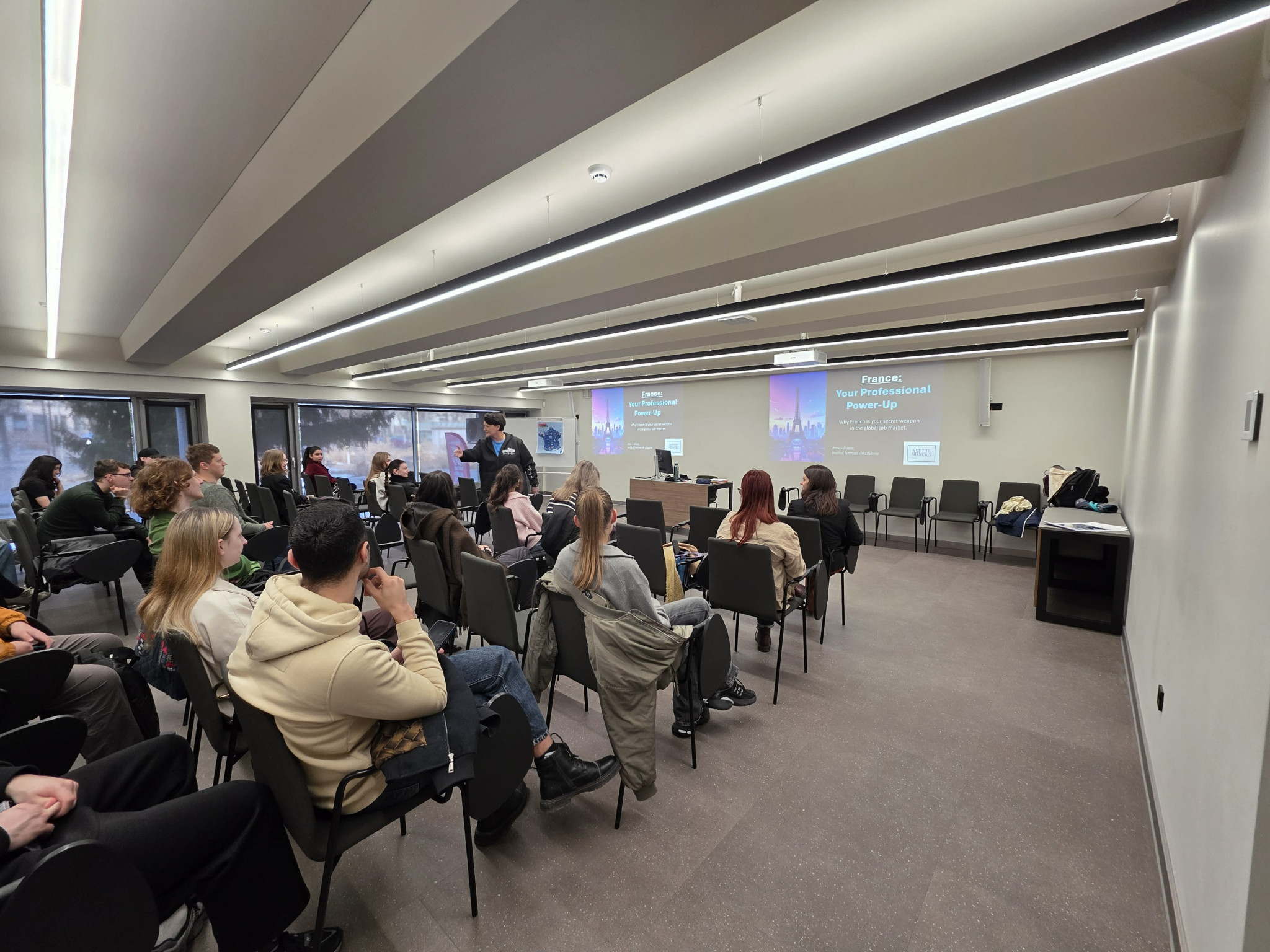 Paskaitos metu studentai susipažino su prancūzų kultūra bei gilino žinias apie Prancūzijos regionų įvairovę. Vėliau viešnios pristatė Prancūzų instituto veiklas, stažuotes ir naudas besimokantiems kalbos. Po paskaitos vyko susitikimas su UKI administracija bei dėstytoja Liudmila Dulksnienė, kurio metu aptartos tolimesnės bendradarbiavimo gairės ir nauji projektai.