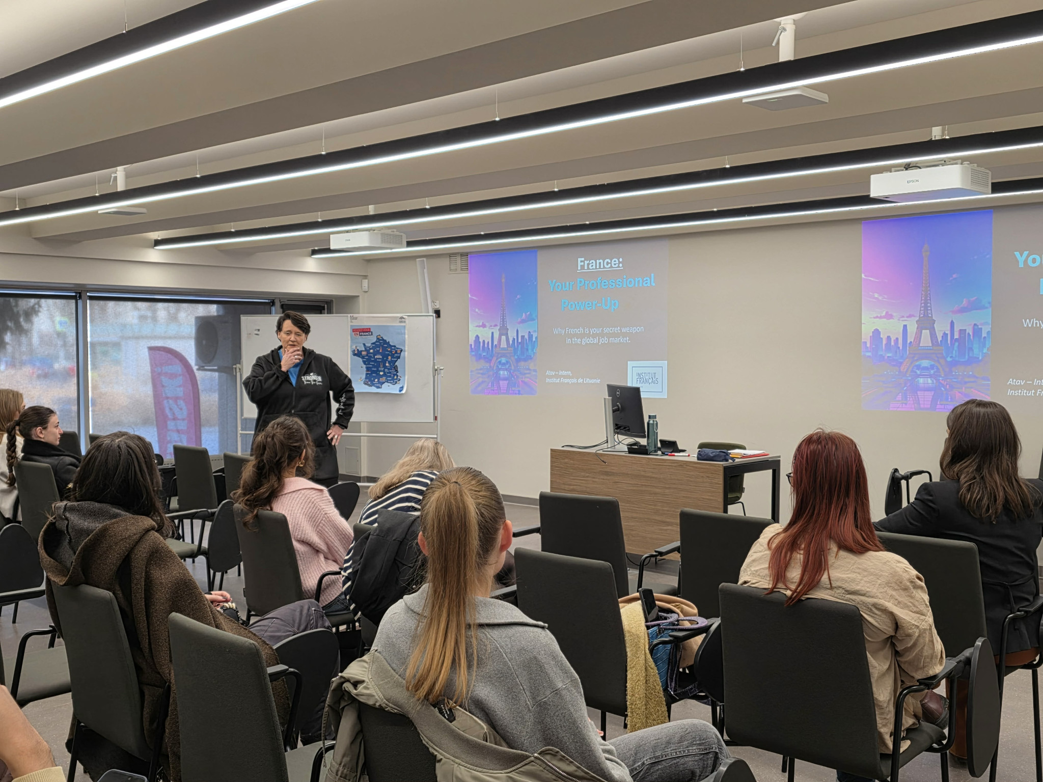 Kovo 12 d. Vytauto Didžiojo universiteto (VDU) Užsienio kalbų institute (UKI) viešėjo Prancūzų instituto atstovės Viktorija Jurkevic-Chiaese ir Atav Roets. Vizito metu jos pravedė interaktyvią paskaitą A1 ir A2 lygio prancūzų kalbos studentams.