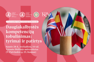 Kauno Juozo Urbšio progimnazija ir VDU Užsienio kalbų institutas sausio 28 d., trečiadienį, VDU daugiafunkciame mokslo ir studijų centre (V. Putvinskio g. 23) organizuoja V Nacionalinę bendrojo ugdymo mokyklų kalbų mokytojų konferenciją „Daugiakalbystės kompetencijų tobulinimas: tyrimai ir patirty...