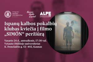 Vytauto Didžiojo universitetas, pokalbių ispaniškai klubas „Kaunas Habla Español” ir Lietuvos ispanų kalbos mokytojų ir dėstytojų asociacija (ALPE) kviečia visus, besidominčius ispanų kalba, į filmo „SIMÓN“ peržiūrą ir pokalbį (charla) ispanų kalba po filmo. „Simón“ – tai 2023 m. Venesuelos reži...